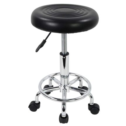 KKTONER PU Leather Modern Round Rolling Stool with Footrest Height Adjustable Spa Drafting Salon Tattoo Work Massage Stools Task Chair Small (Black)